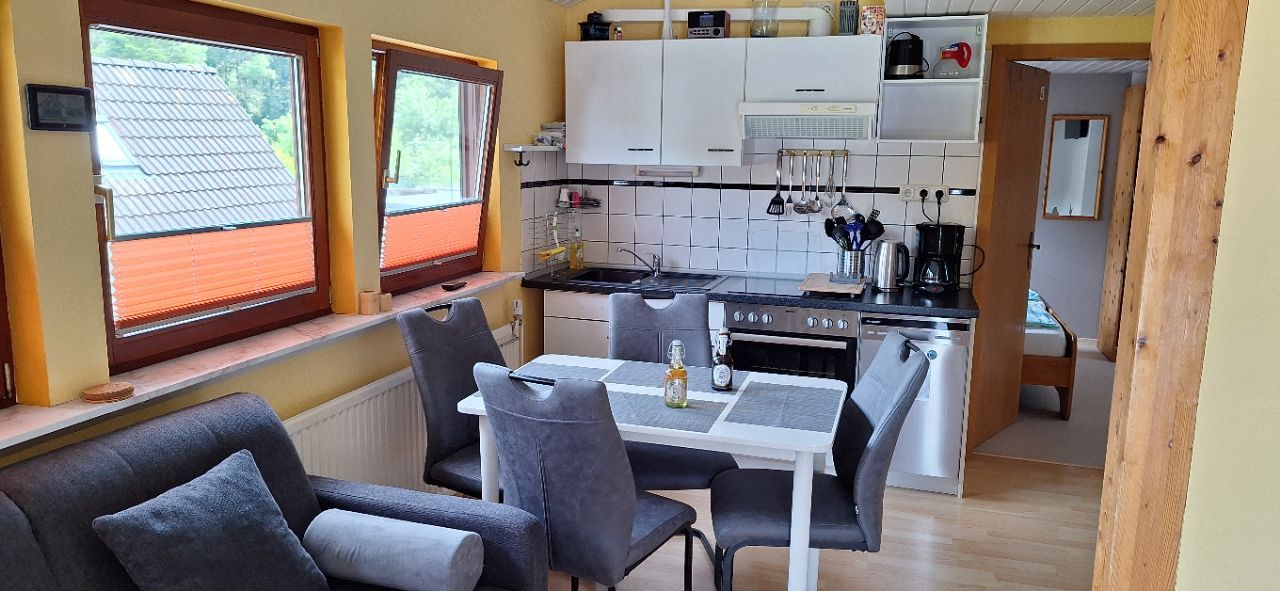 - Wohnzimmer mit kompletter Küchenzeile und Esstisch mit 4 bequemen Stühlen
